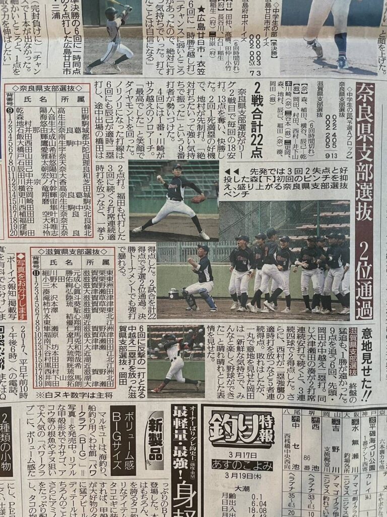 生駒ボーイズ22期生から3名が奈良県選抜に選出され、